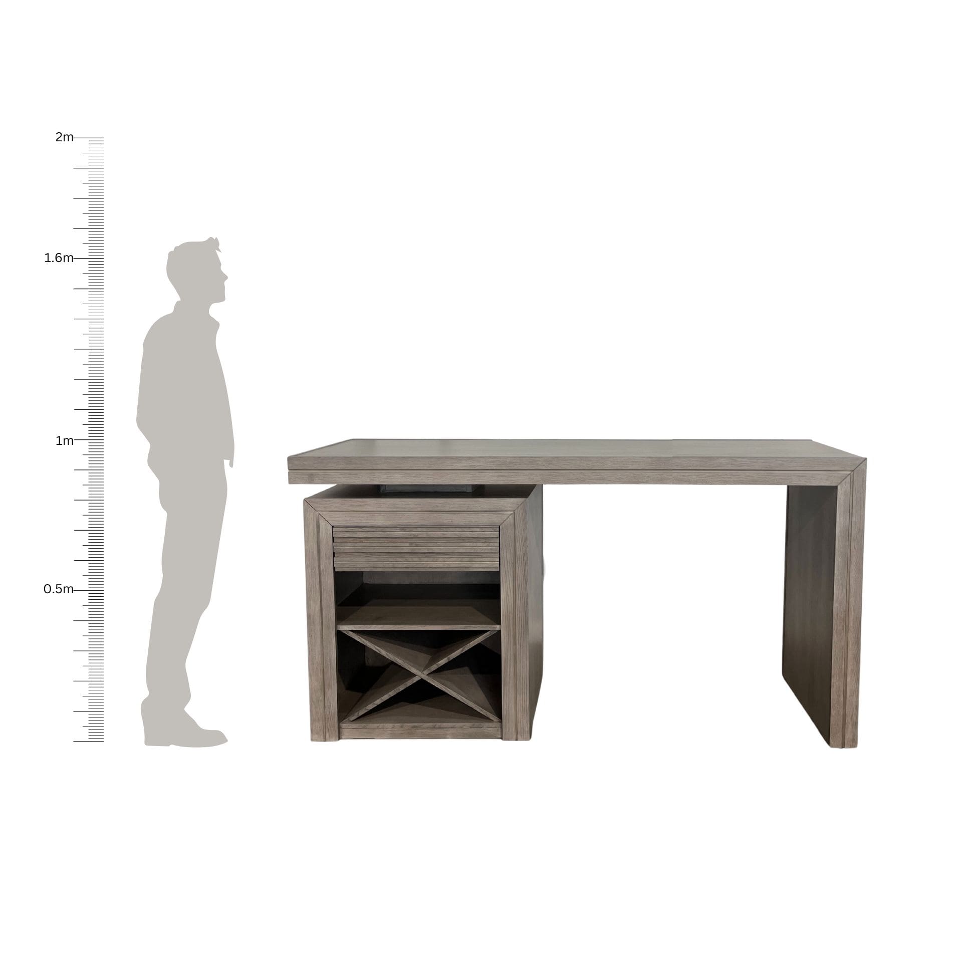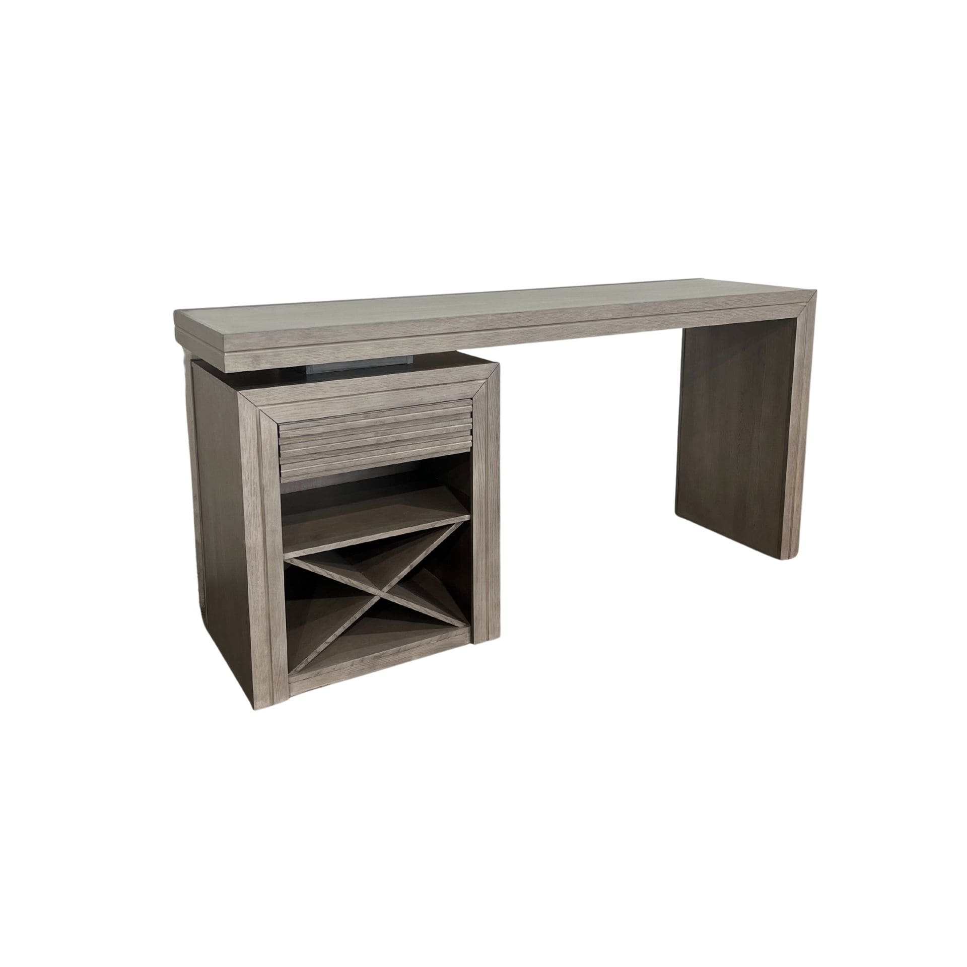 Este mueble de bar en tono gris ofrece un diseño moderno con espacio para botellas, copas y accesorios. Su acabado neutro combina fácilmente con distintos estilos de decoración, convirtiéndose en un punto sofisticado para reuniones y momentos especiales.