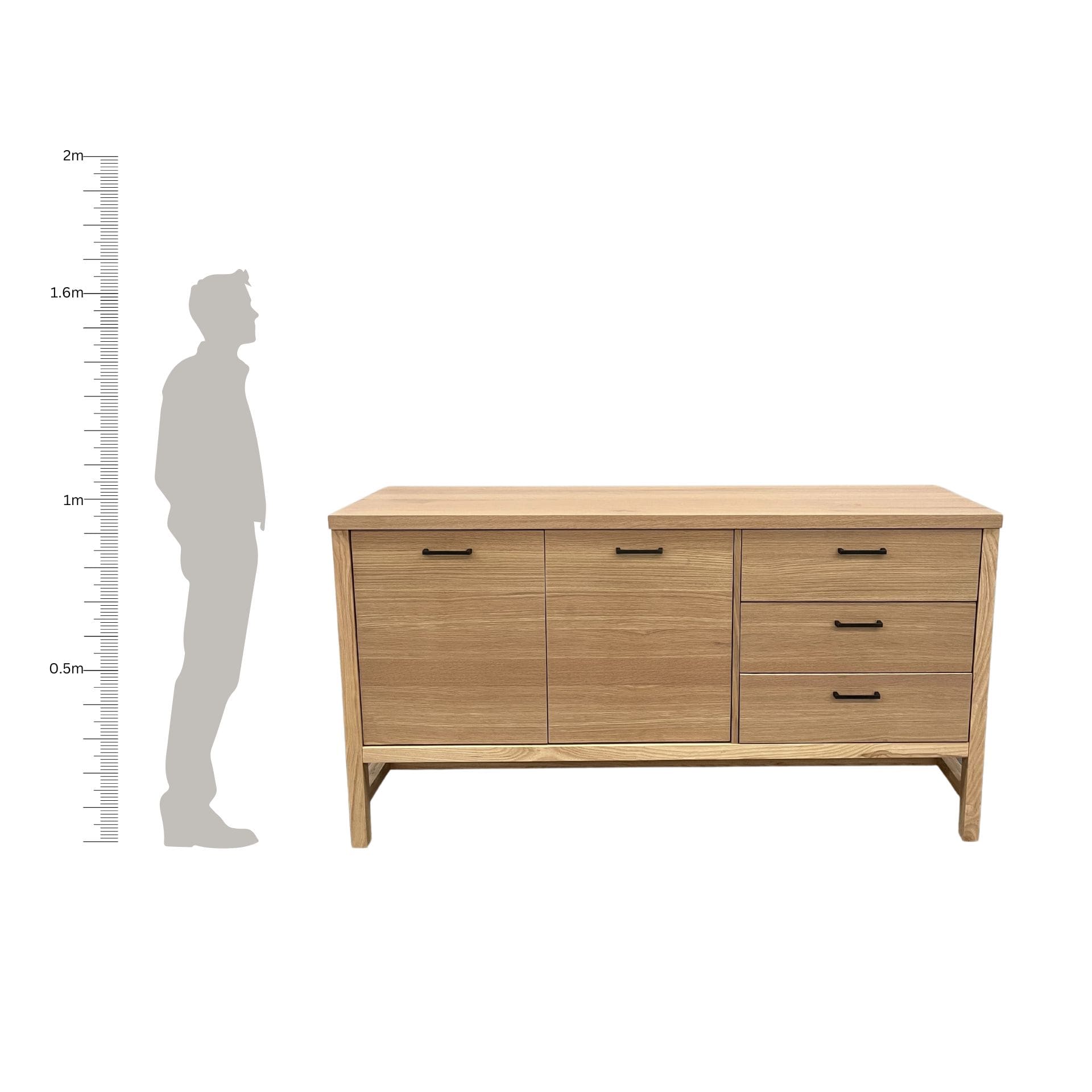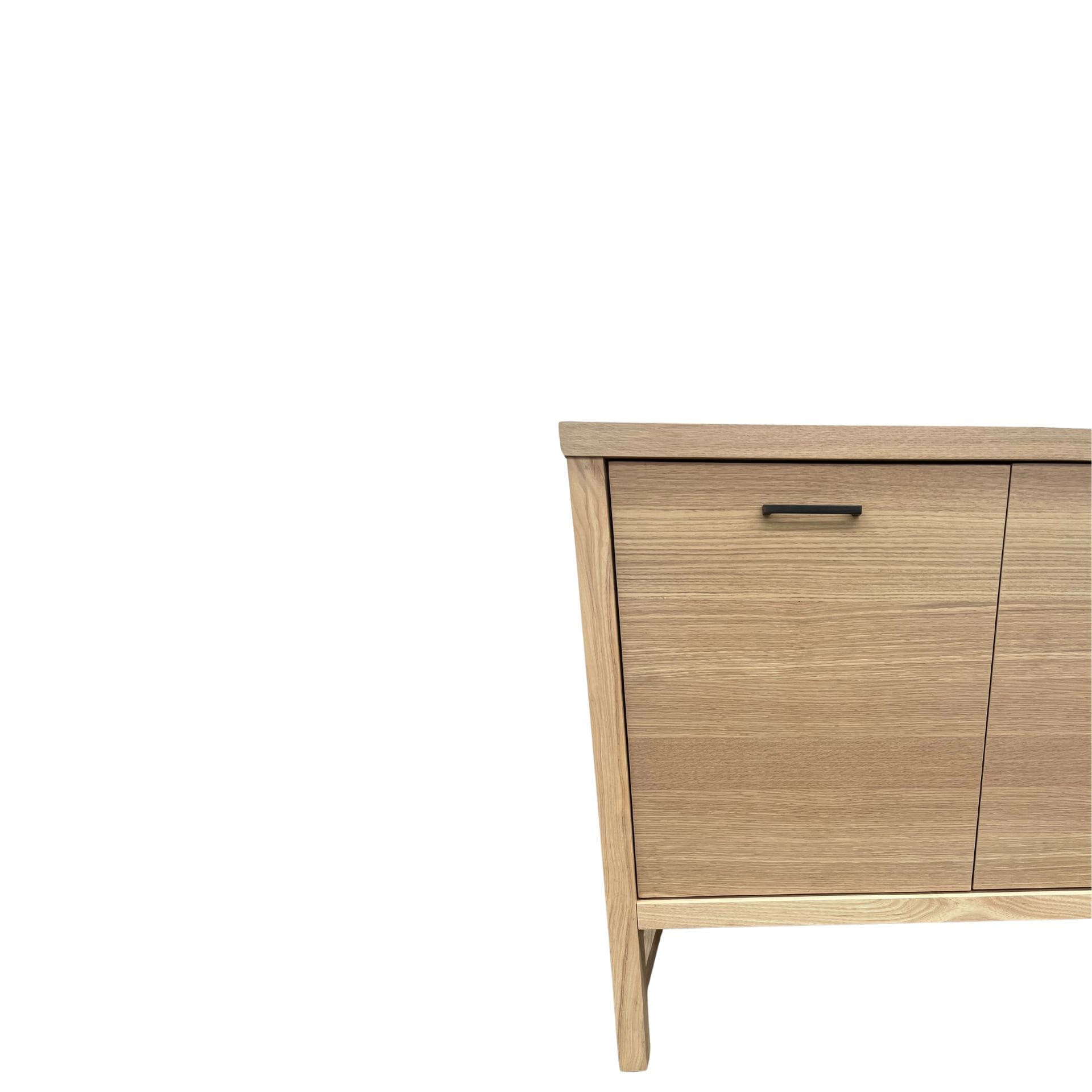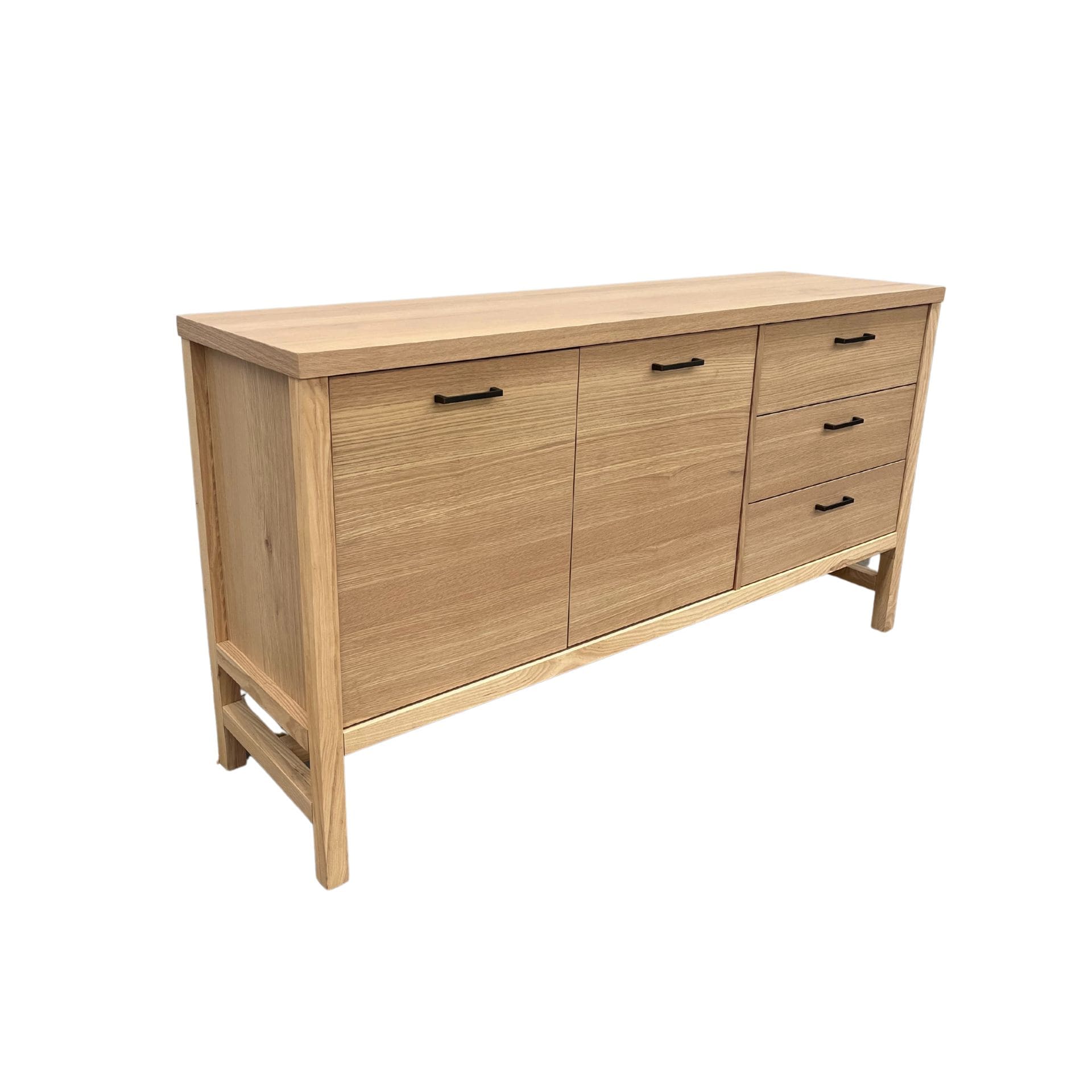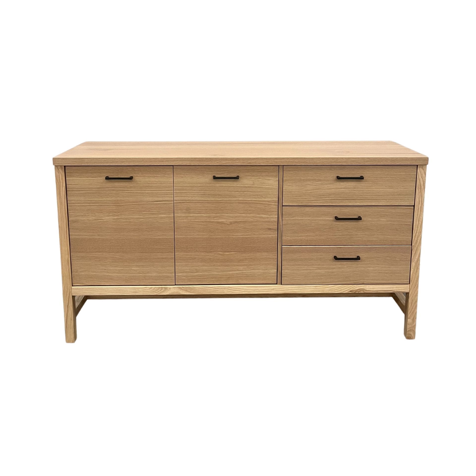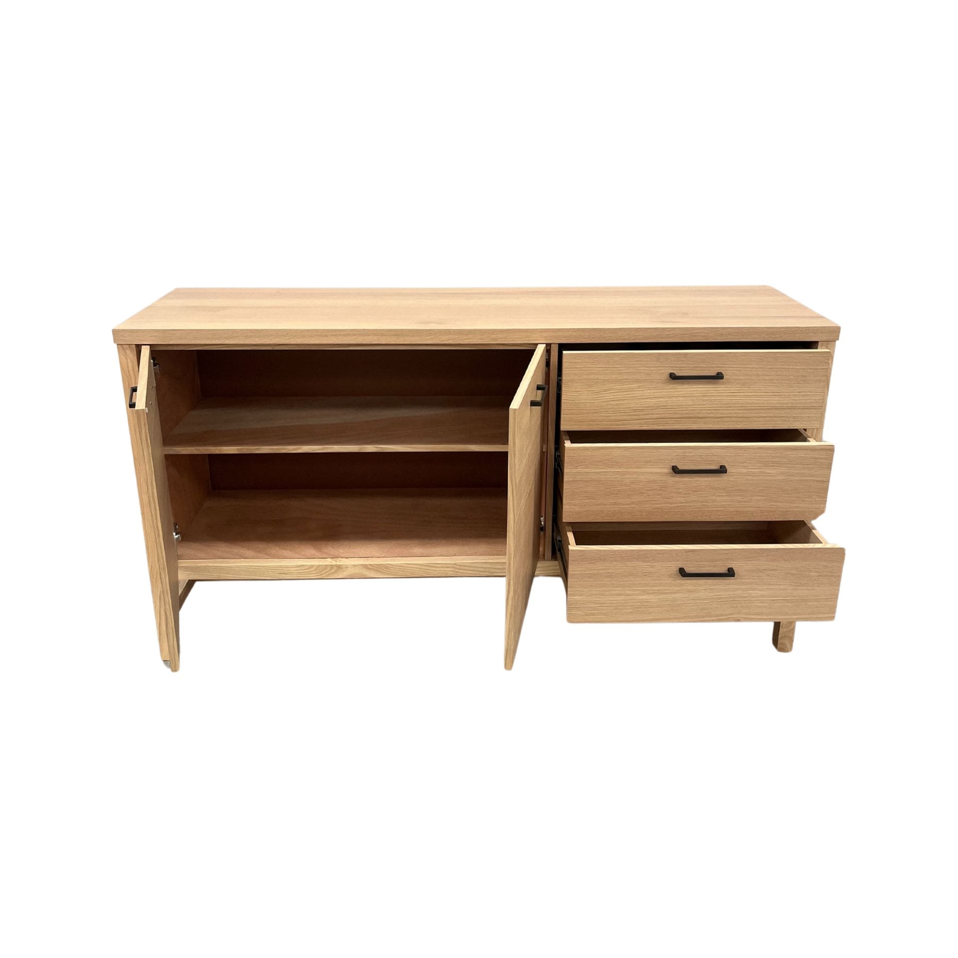 Credenza en tono de madera clara, para comedores o áreas de almacenaje. Ofrece amplio espacio con puertas y cajones, combinando practicidad y un estilo cálido que ilumina cualquier ambiente.