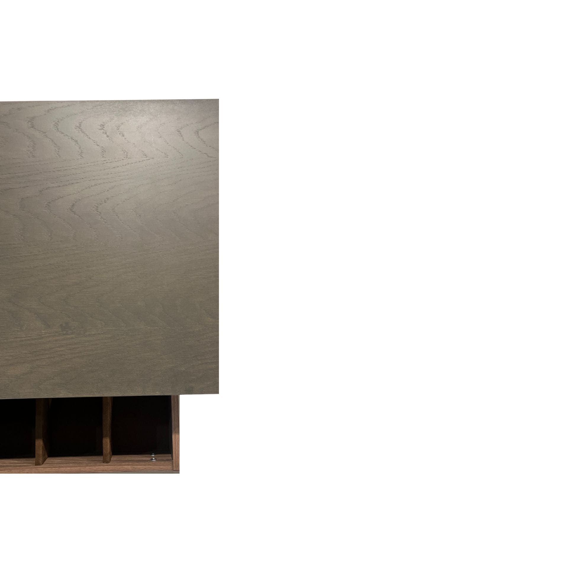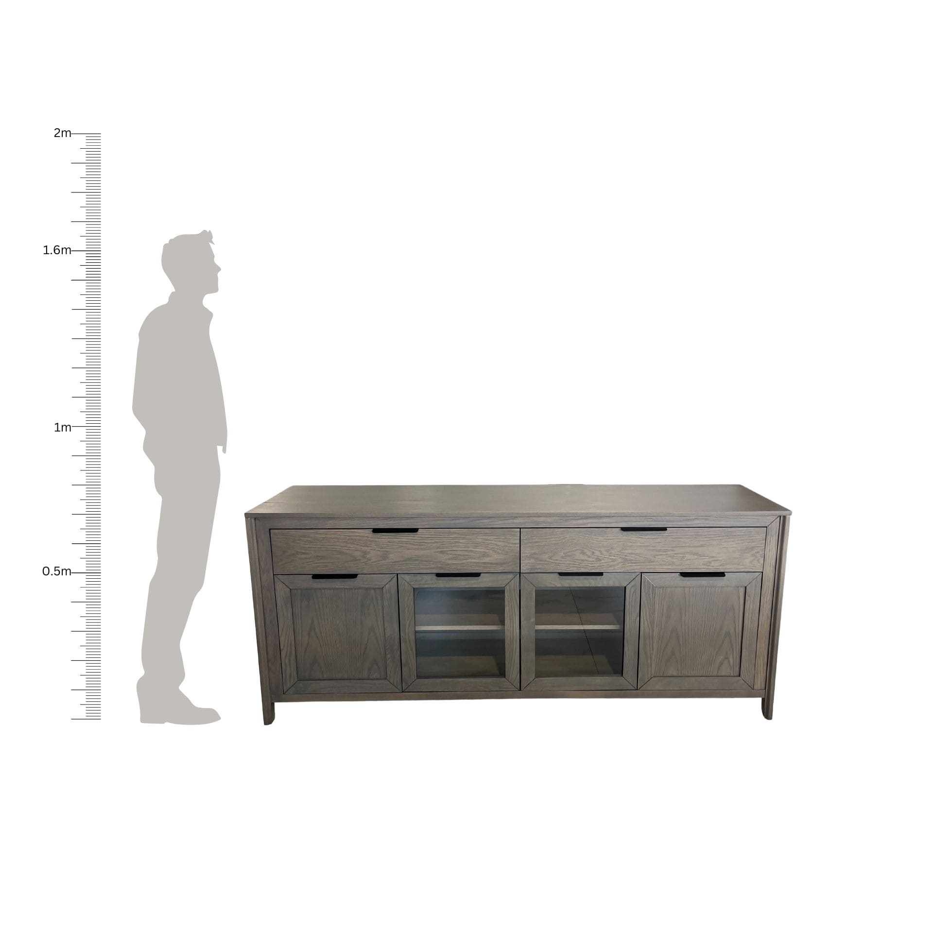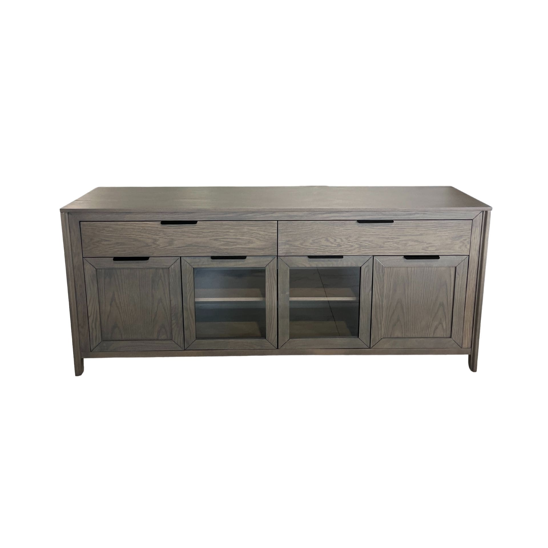 Combina diseño contemporáneo con acabados elegantes en tono basalto. Su amplio espacio de almacenamiento y cajones internas la hacen perfecta para organizar y lucir objetos en comedores o salas modernas.