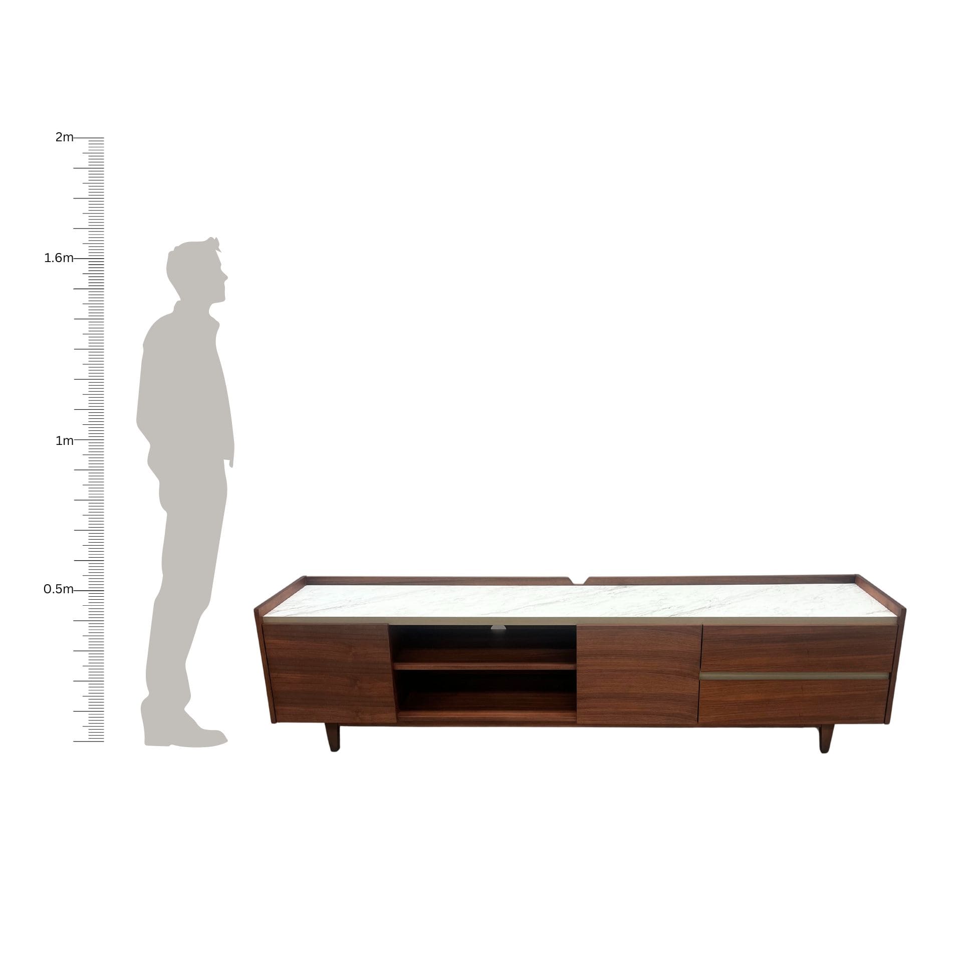 Diseño sobrio y moderno en tono café, ideal para darle un toque elegante a tu sala. Ofrece soporte seguro para tu pantalla y espacio de almacenamiento para consolas, controles o decoración. Funcionalidad y estilo en una sola pieza.