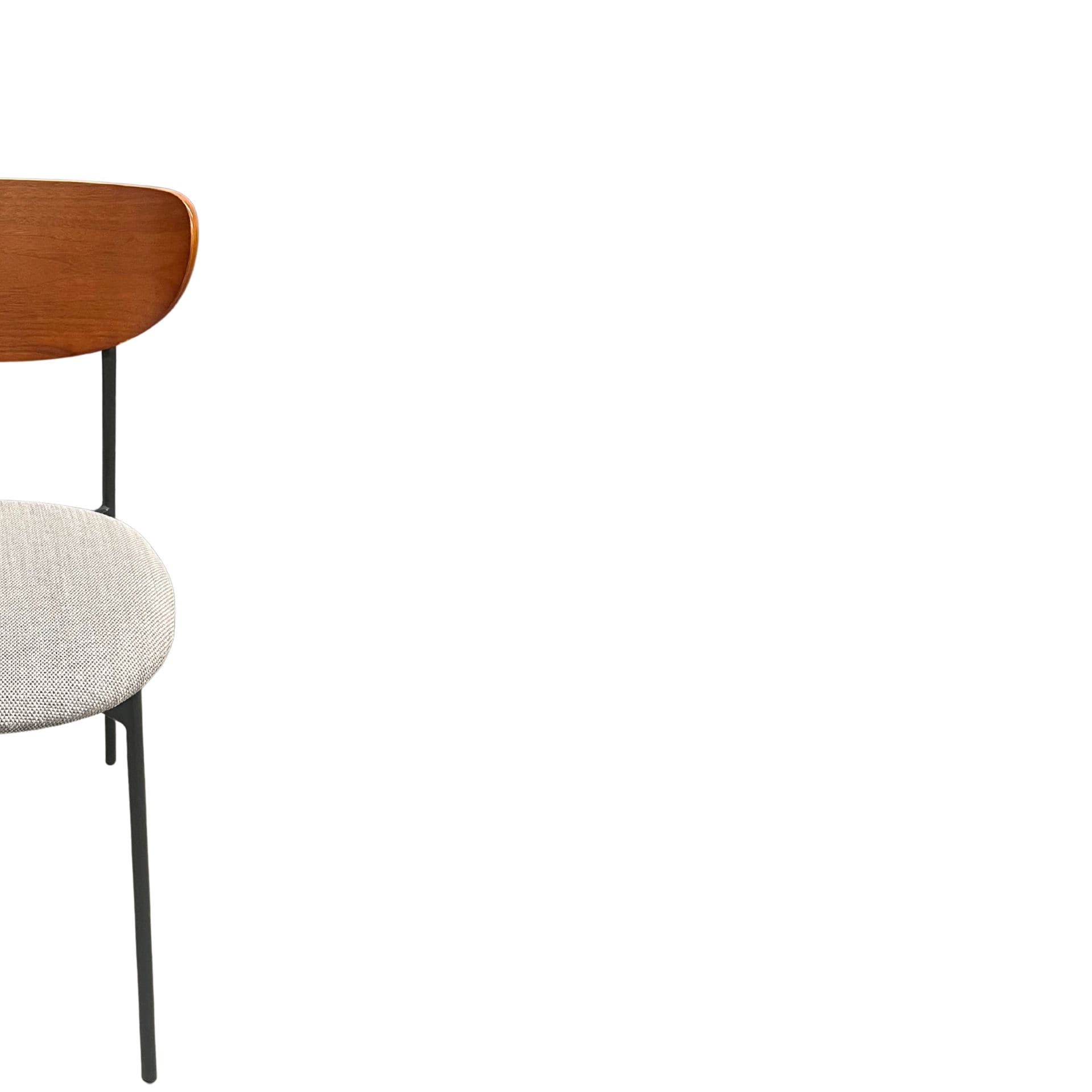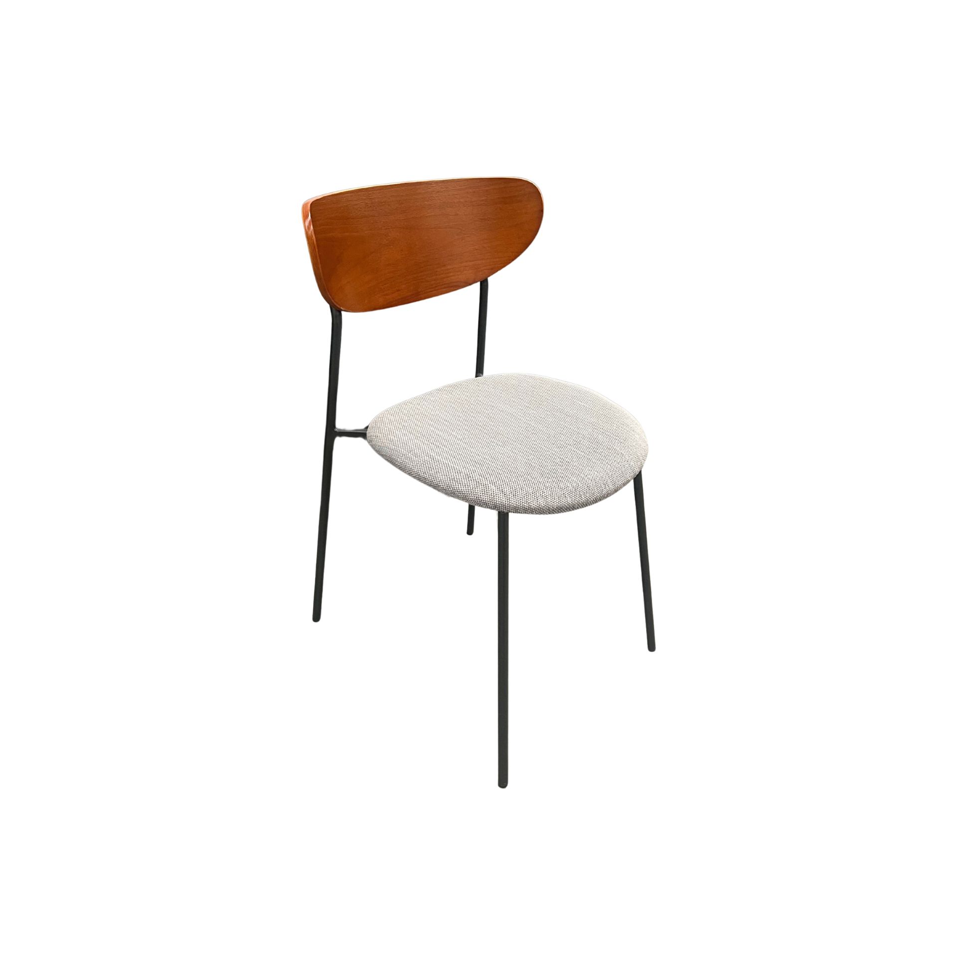 Elegante y resistente, esta silla combina confort y durabilidad. Su asiento tapizado en tela tono gris claro ofrece suavidad y estilo, mientras la estructura metálica brinda firmeza y estabilidad. Ideal para comedores, escritorios o espacios modernos con un toque sofisticado.