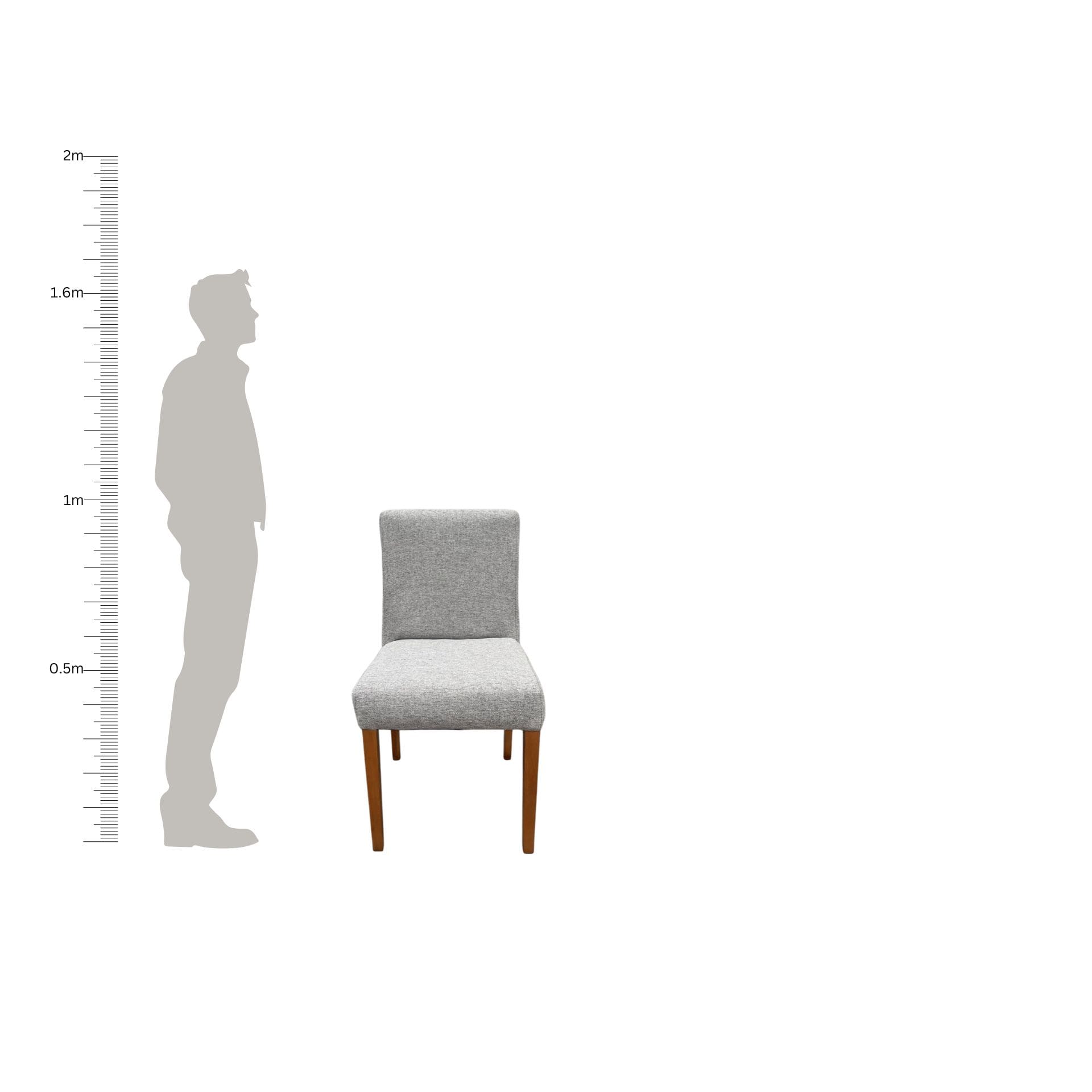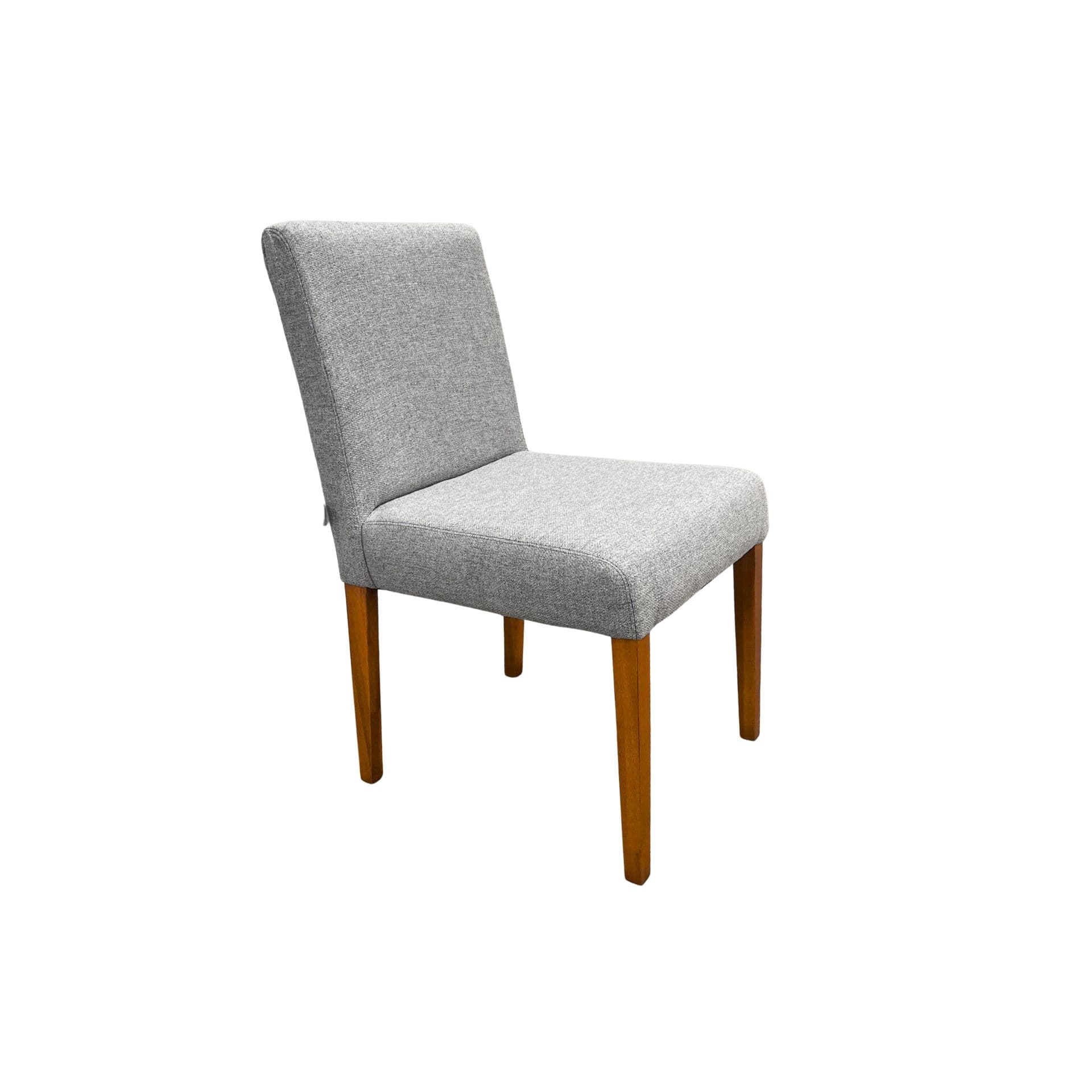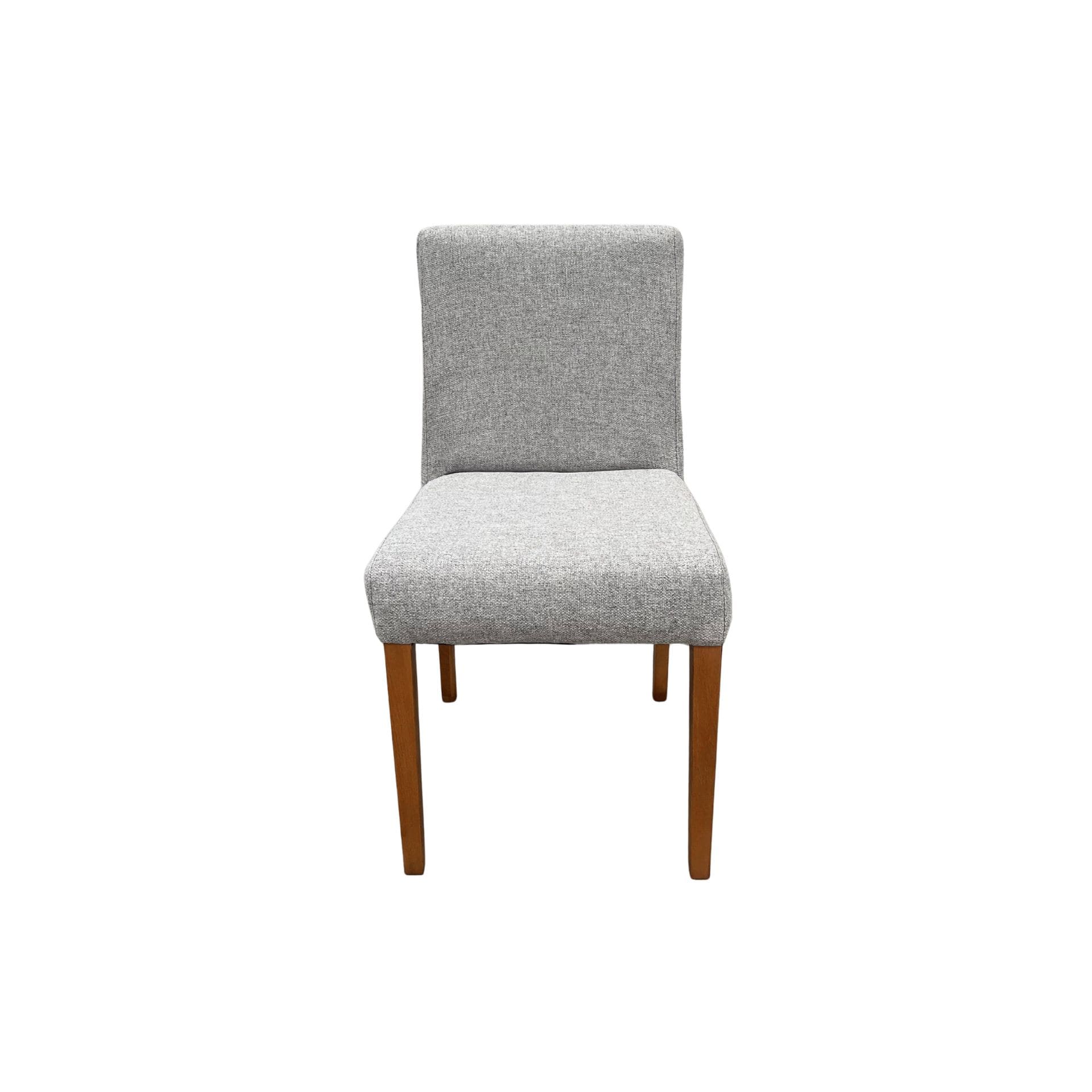 Silla de comedor con respaldo alto y tapizado claro, ideal para dar comodidad y un estilo sobrio al espacio. Su diseño versátil combina fácilmente con distintos tipos de mesa y decoración.