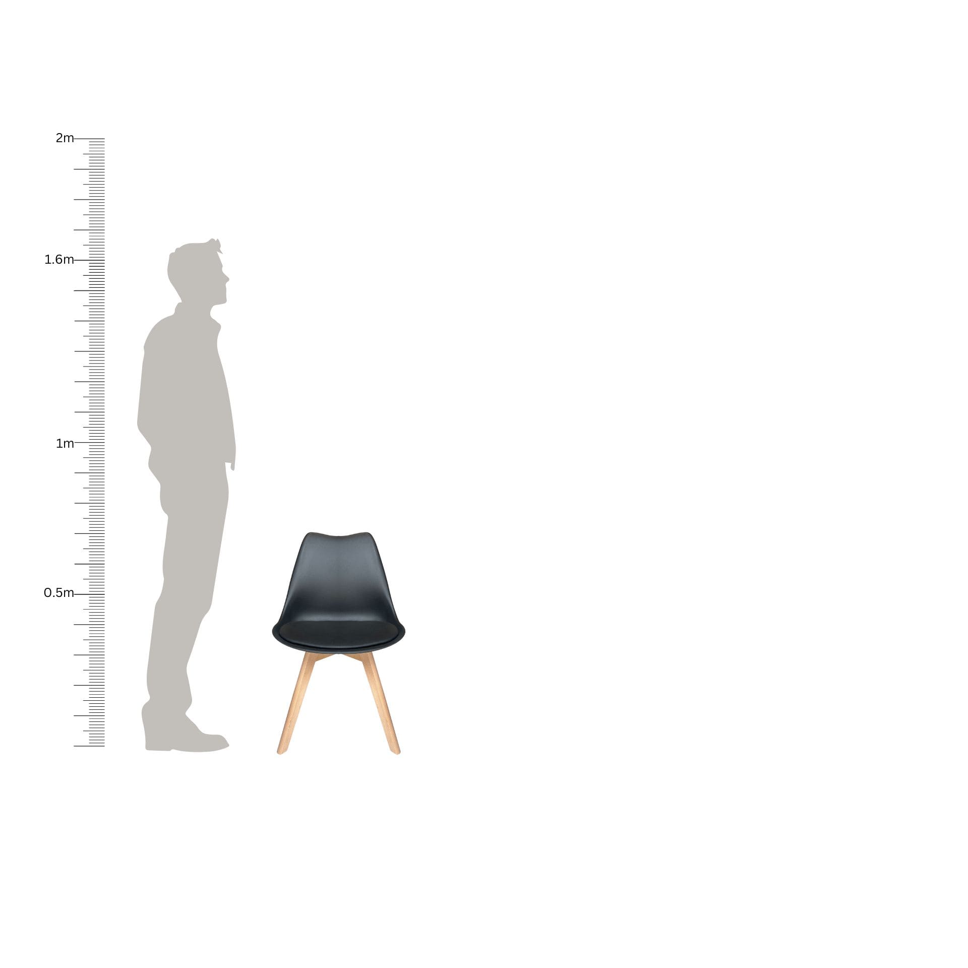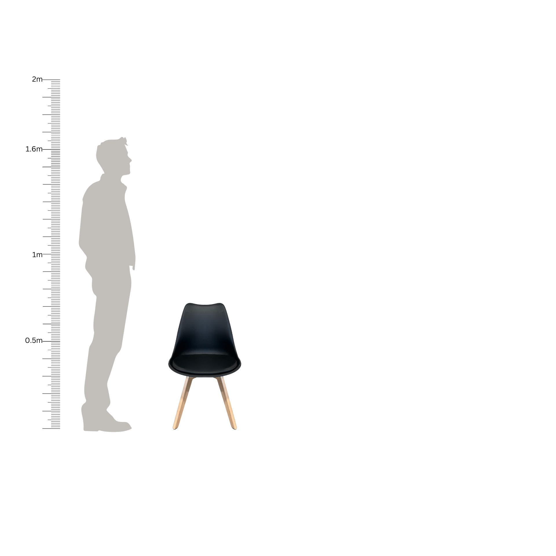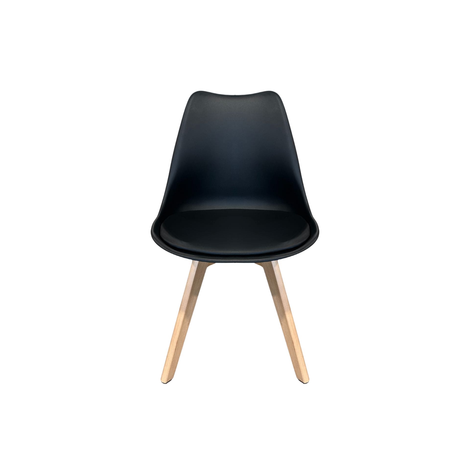 Silla estilo Eames en color negro, fabricada en plástico resistente y equipada con asiento de vinipiel para mayor comodidad. Su diseño moderno y versátil la hace perfecta para comedores, oficinas o espacios contemporáneos.