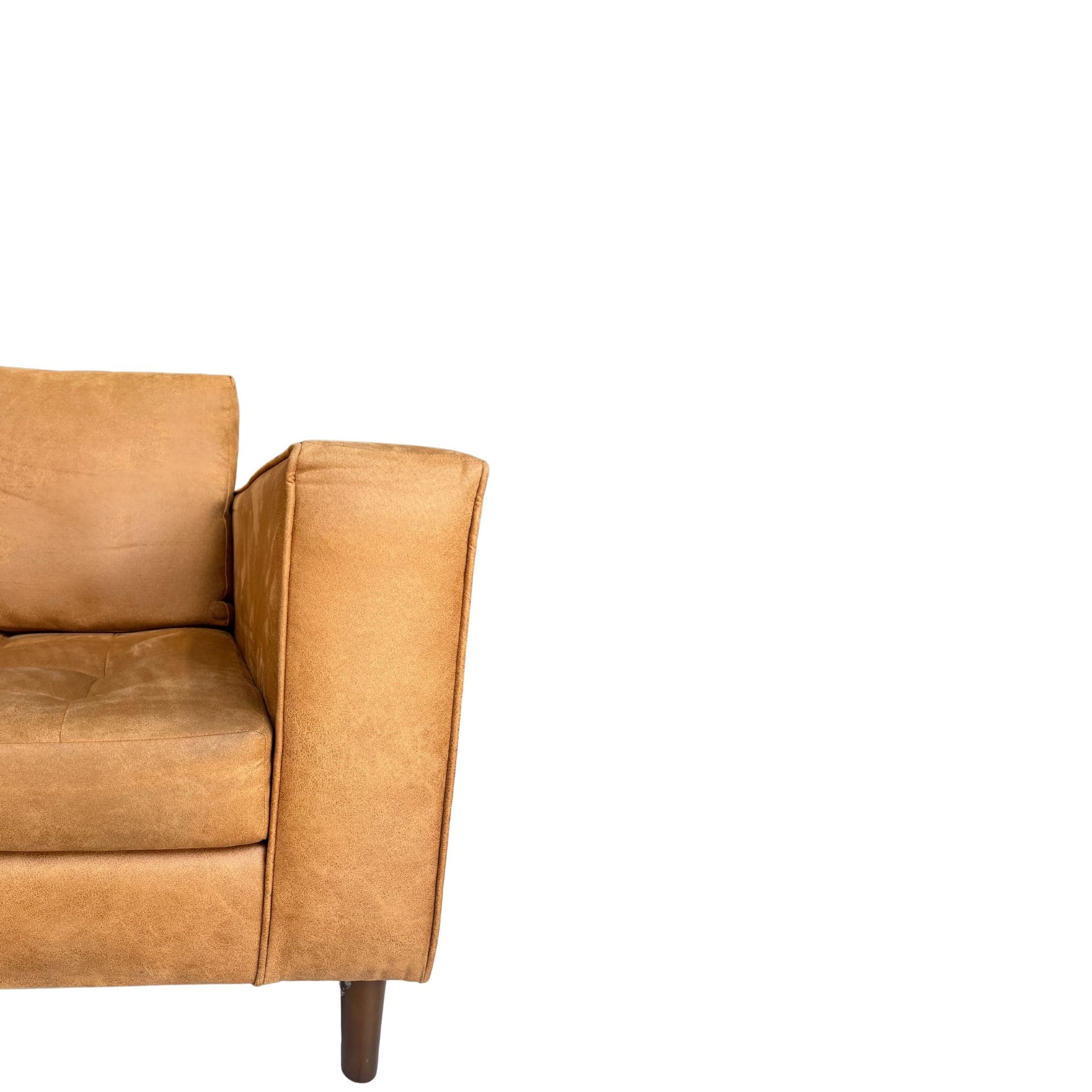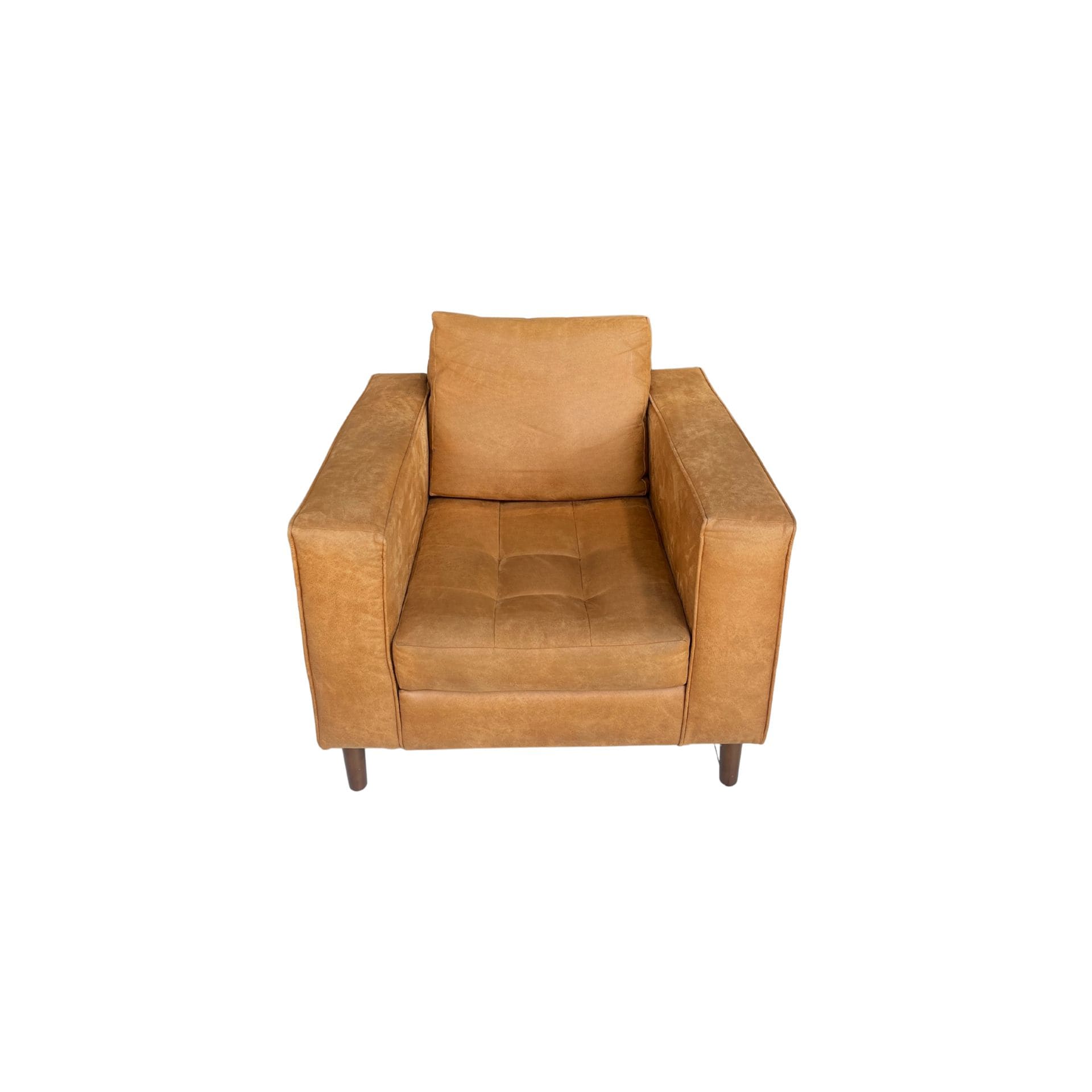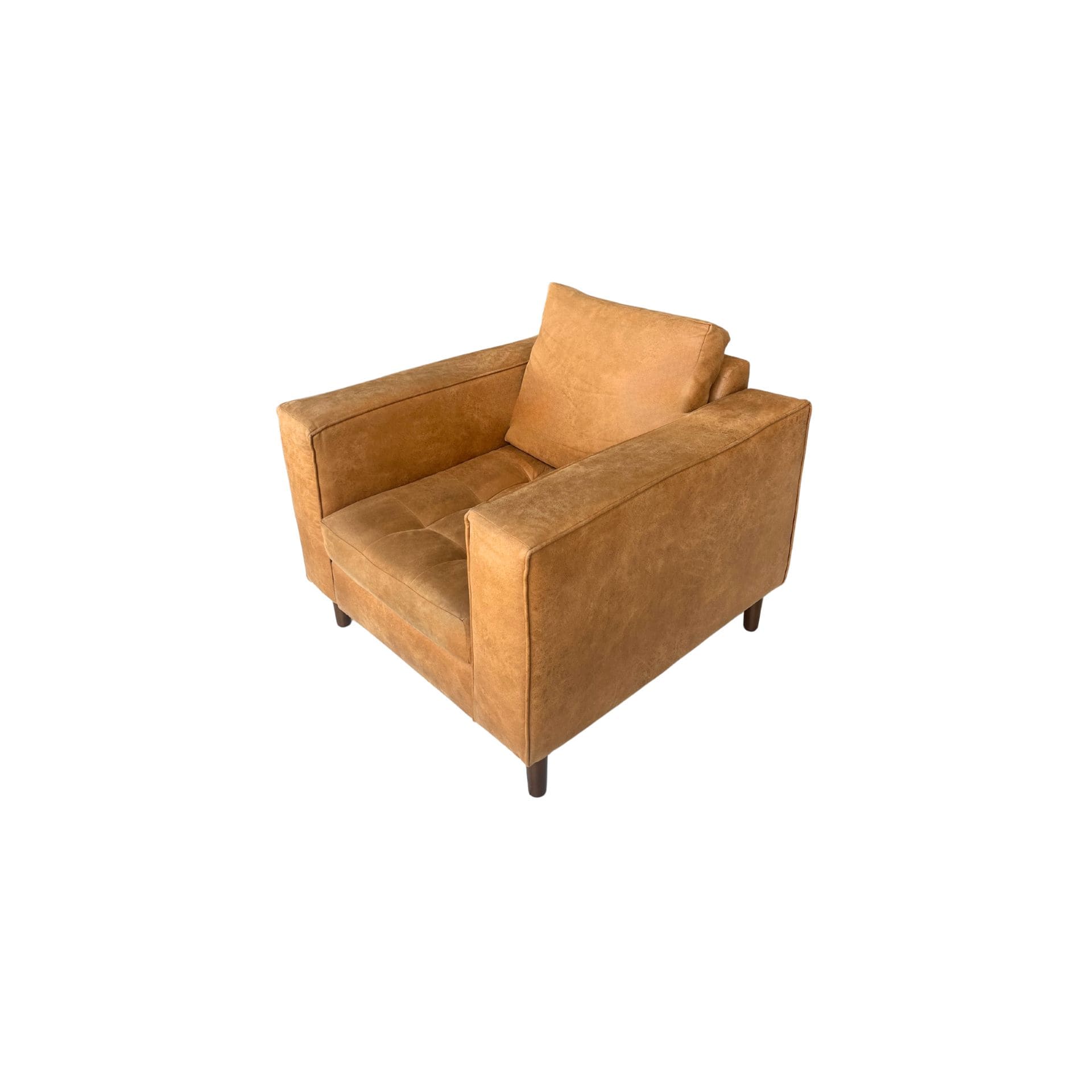 En tono naranja-café, perfecto para complementar espacios con carácter. Su tamaño compacto y estructura firme lo convierten en una pieza funcional y decorativa, ideal para rincones de lectura o salas pequeñas con estilo.