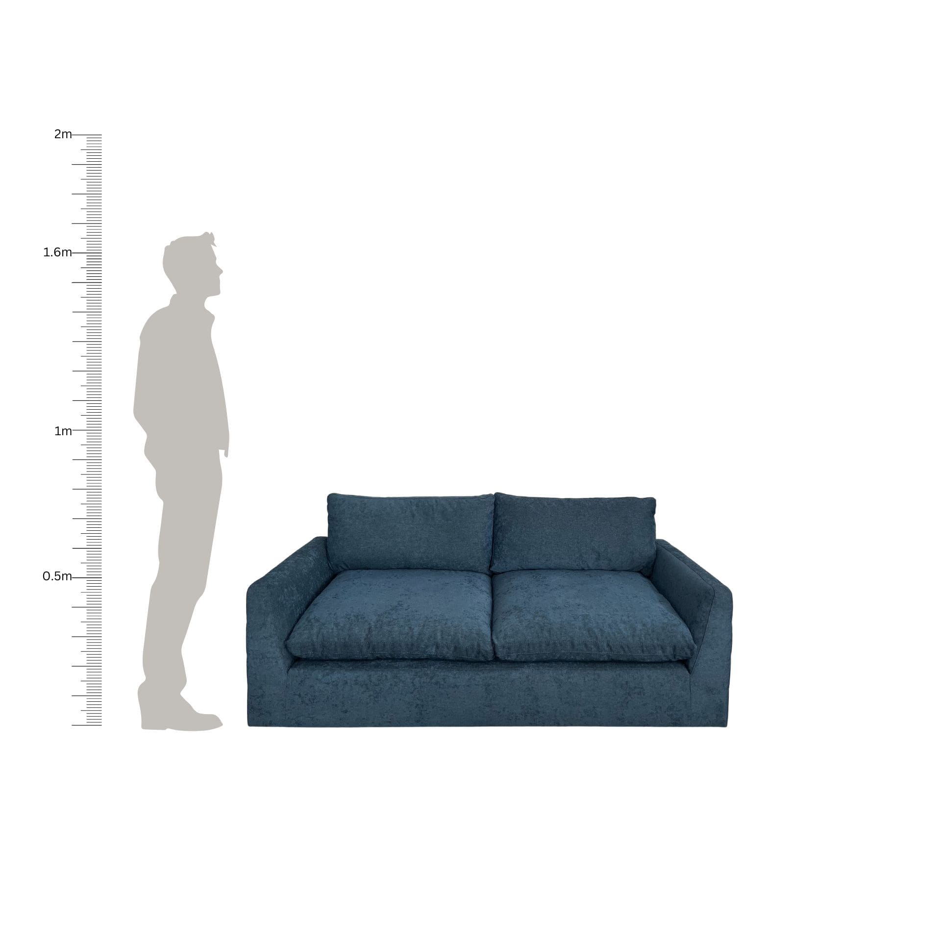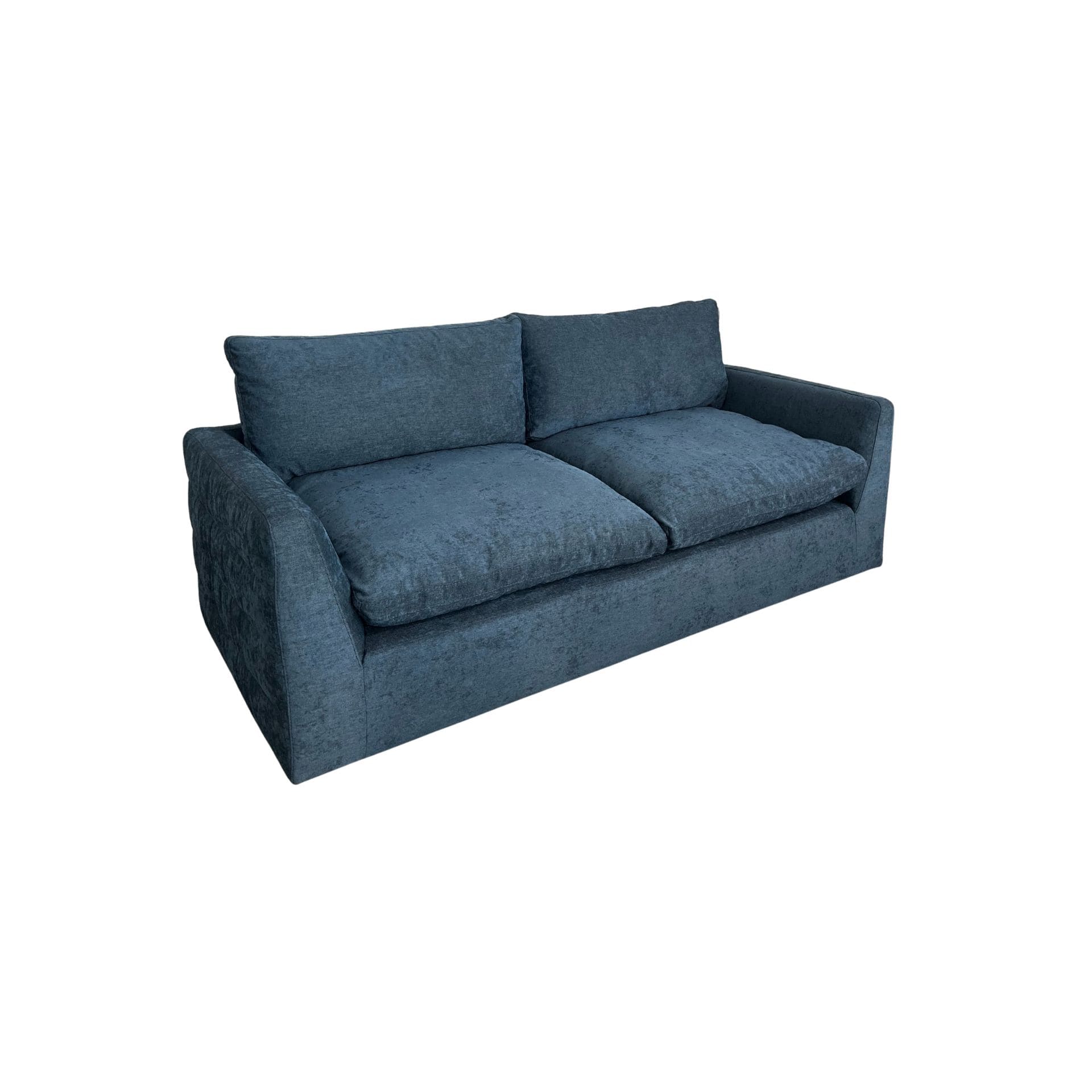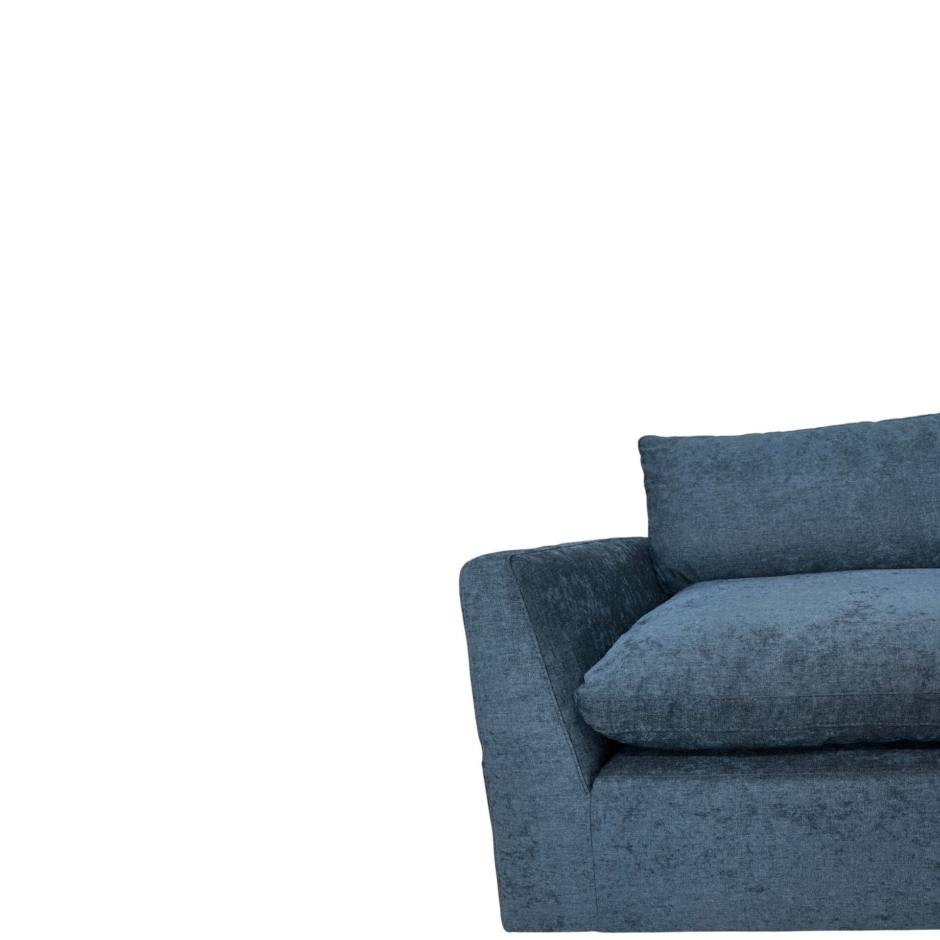 Sofá moderno en tono azul, con un diseño que se adapta a distintos estilos de decoración. Ofrece asientos amplios y acolchados para mayor comodidad diaria.