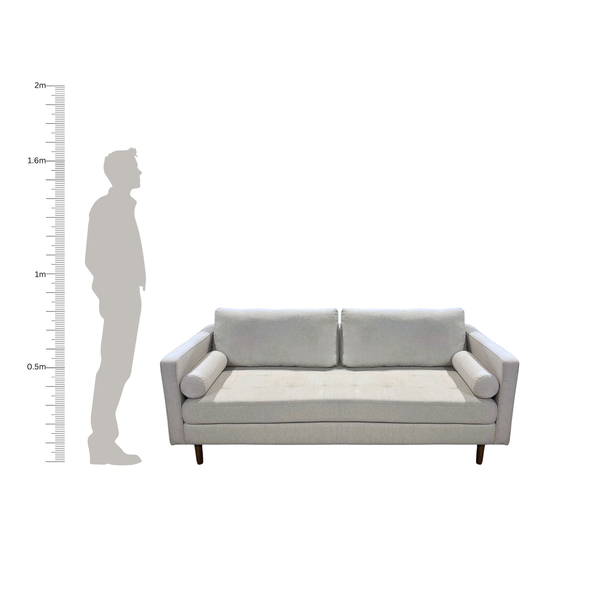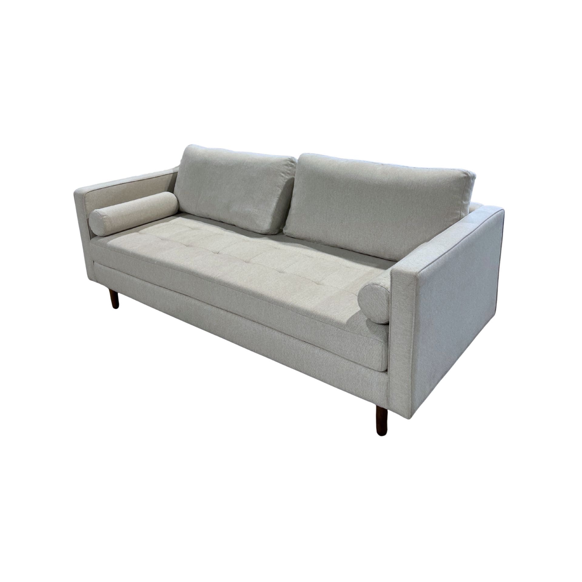 El tapizado en tela suave al tacto brinda una sensación acogedora, mientras que la estructura sólida garantiza durabilidad y soporte. Gracias a su color claro, amplía visualmente el espacio y transmite serenidad, convirtiéndose en el centro perfecto de descanso y convivencia.