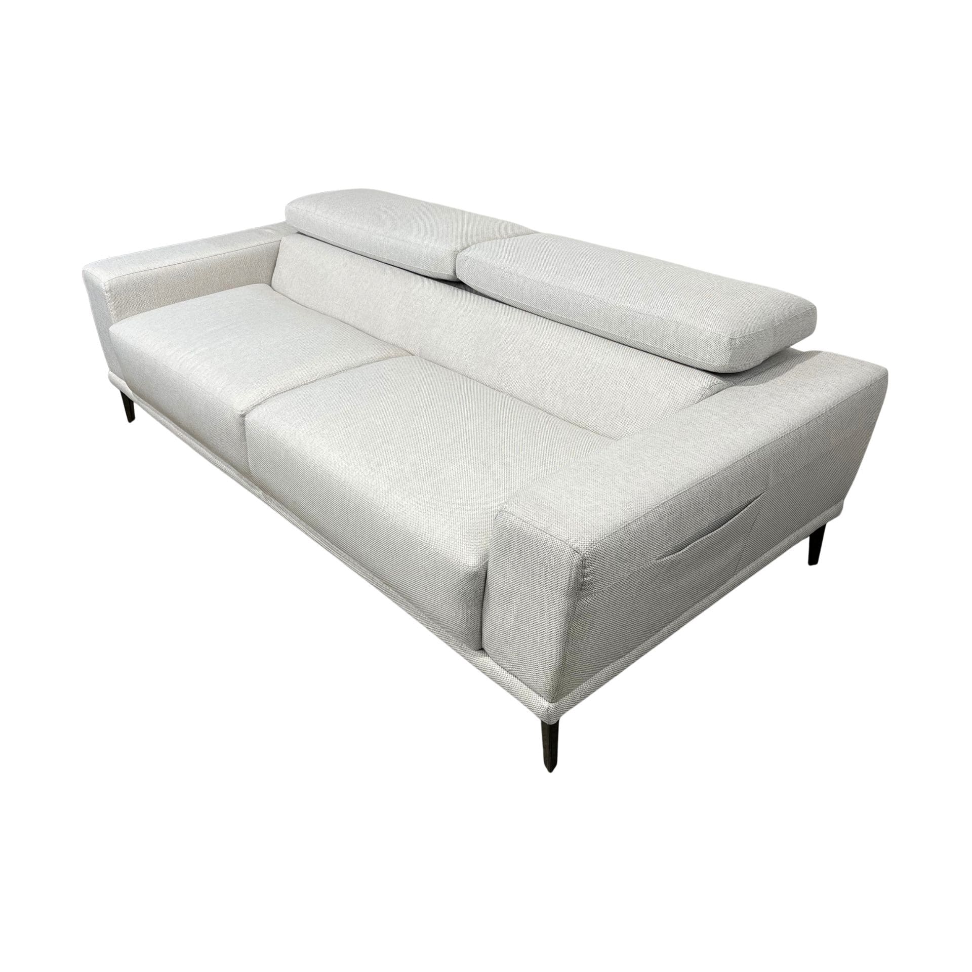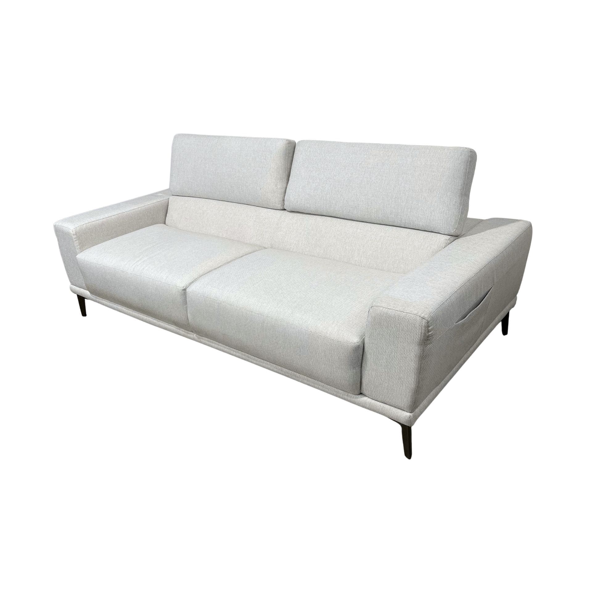El respaldo se mueve para más comodidad, es ligero y cómodo. También tiene un espacio para almacenar cualquier objeto en los dos costados del sofá; puede ser controles de TV, o cualquier otra cosa. El color claro es perfecto para combinarlo en tu sala o cualquier espacio en tu casa.