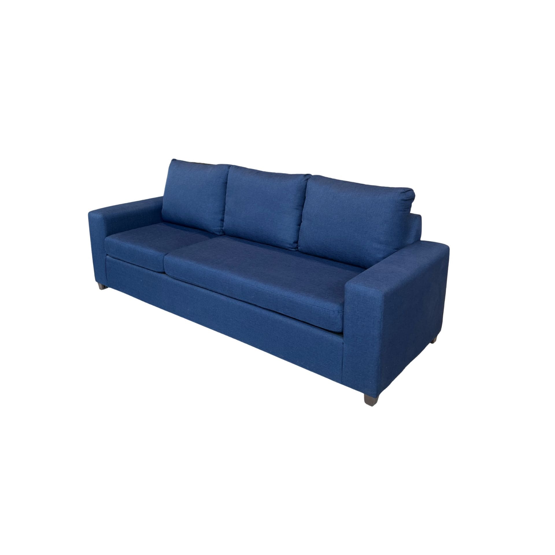 Sofá en tono azul con diseño moderno y acogedor. Tapizado suave y estructura cómoda, ideal para salas que buscan una estética neutra y elegante. Su color versátil combina fácilmente con distintos estilos de decoración.