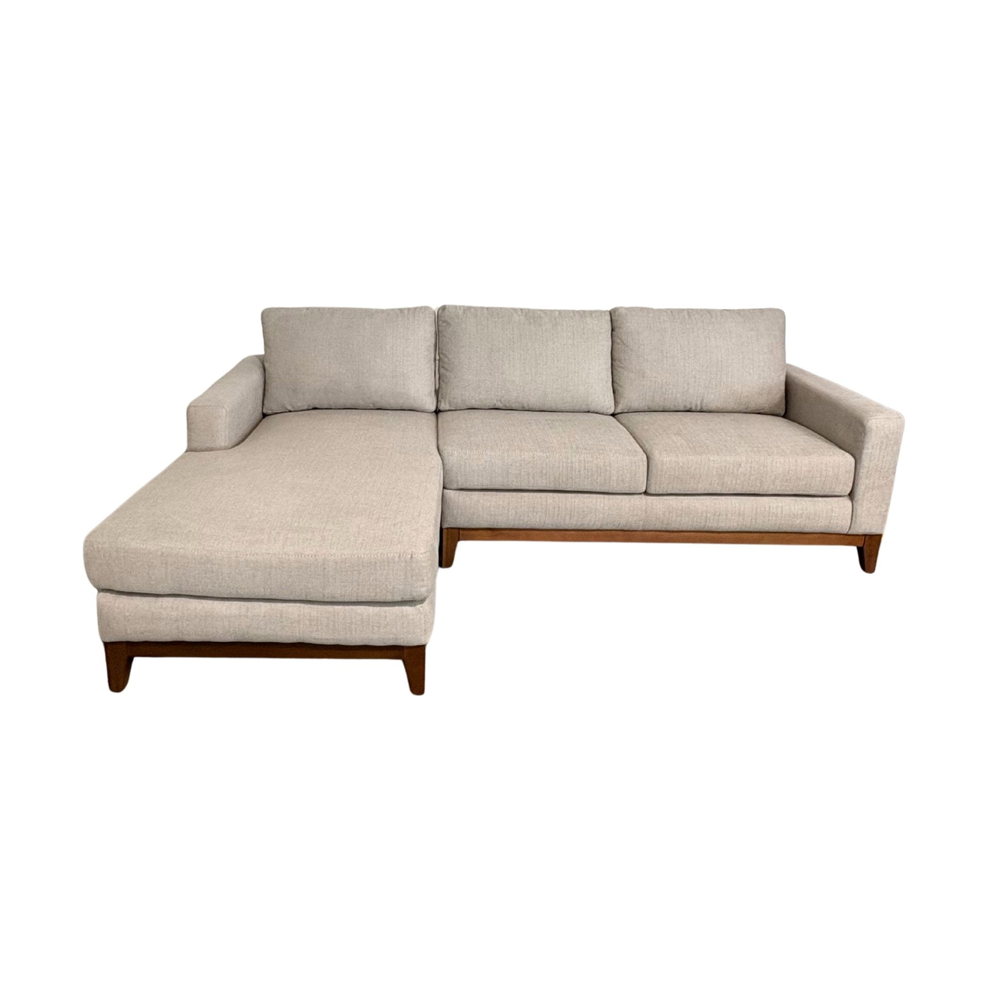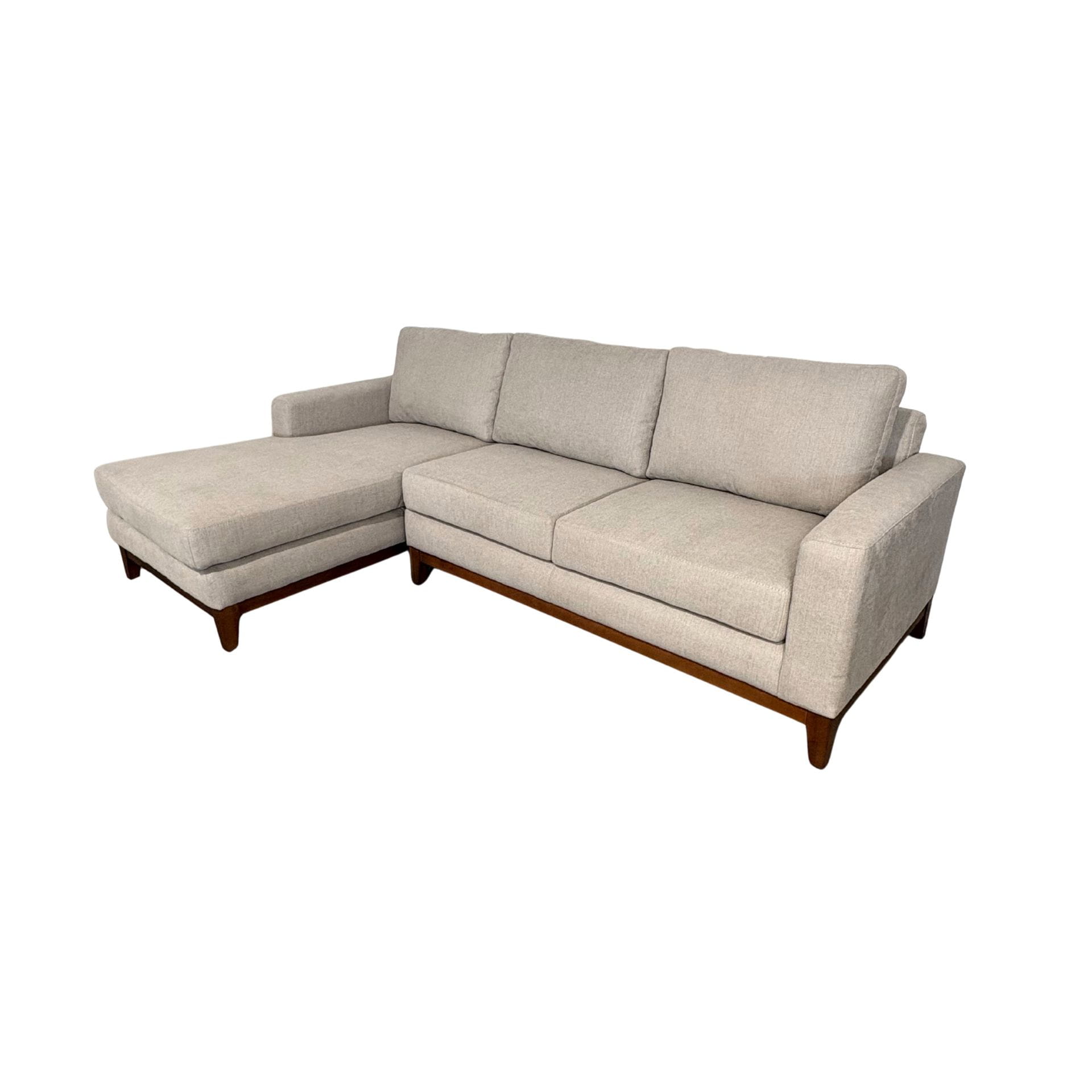 Sofá tipo chaise longue de líneas limpias, ideal para crear un rincón de descanso cómodo y moderno. Disponible del lado derecho.